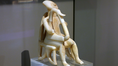 The art of the Cycladic Islands is best known for beautiful and enigmatic figures of varying sizes. Marbles once painted and with a strong abstract quality that attracted the attention of some of the leading artists of the 20th century.