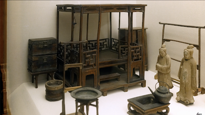 Miniature figurines and furniture in a Ming Tomb
