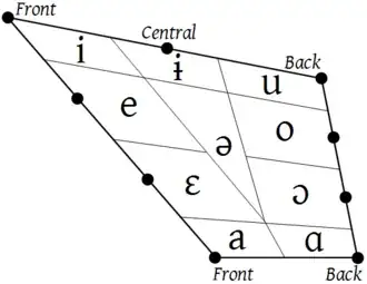 The Association also recommends that the letter ə be employed to denote any unrounded vowel situated in the interior triangle (see Fig. 4). If a language contains two unrounded central vowels, it is recommended that ə be used to denote the closer one and ɐ for the opener one. Occasionally the form ɜ may be employed to represent another variety of central vowel.