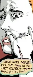 Note that in these panels, the colors blue and green are used for more forceful speech, unlike what the various wikis posited. However, those colors are darker than the ones used before. It might even be possible to interpret the last two bubbles by Delirium in the above picture to contain an increase in both volume (the huge, bold word "GOD") and emotion (the shift from white to dark green from left to right).