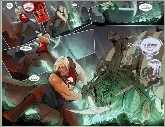 Finally, the 9-panel grid allowed the creators to explore the potential of 2-page "splash" scenes, such as this one: