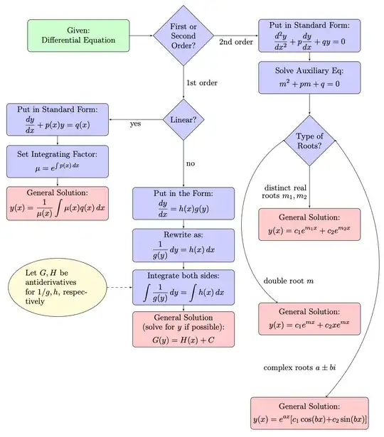 I am currently trying to build a flow chart to visualize all tests there are to tell whether an ordinary differential equation is solvable and how to solve it. This is for tutoring purposes.