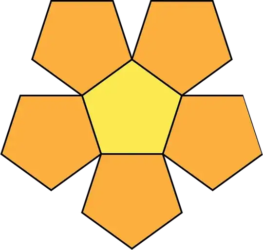 and there are 9 other similar formulas for the other corners. Another easy step is seeing that type I pentasegments turn into type II pentasegments (and vice versa) after attaching the next layer of pentagons, and seeing how the number of pentagons along each type of pentasegment changes is also straightforward. Maybe there's a more elegant description which might then lead to a simple formula / algorithm to compute $dd(p)$.