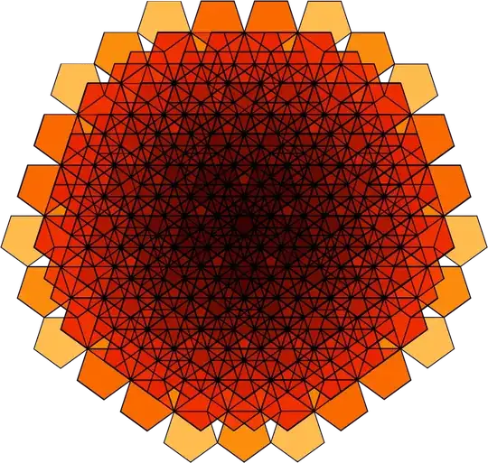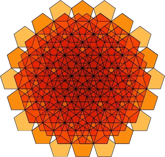 Here is a central portion of the same thing with lines connecting the centers of pentagons which share an edge. The resulting hexagons tile the plane with a $5$-fold rotational symmetry.
