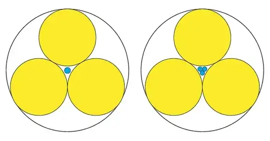 Question 2. The natural case in which the weight of a disk coincides with its area, resp. volume, is of special interest: how much in this case can the radius of the container for a tightest balanced packing differ from the radius in the tightest packing without the balance requirement? To be more precise: what is the least upper bound on the ratio ${r_b}\over{r}$?