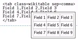 <tab border=1> Field 1→Field 2→Field 3 Field 4→Field 5→Field 6 Field 7→Field 8→Field 9 </tab>