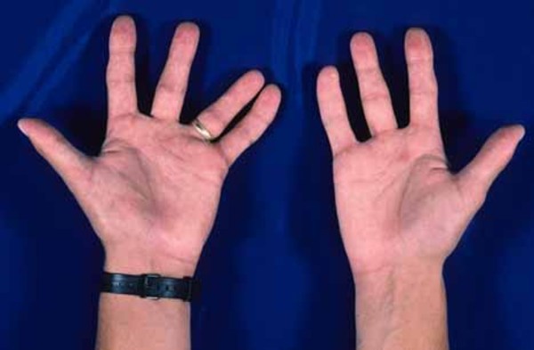 Abnormalities of the hands and feet are also common in people with Adams-Oliver syndrome. These most often involve the fingers and toes and can include abnormal nails, fingers or toes that are fused together (syndactyly), and abnormally short or missing fingers or toes (brachydactyly or oligodactyly). In some cases, other bones in the hands, feet, or lower limbs are malformed or missing.