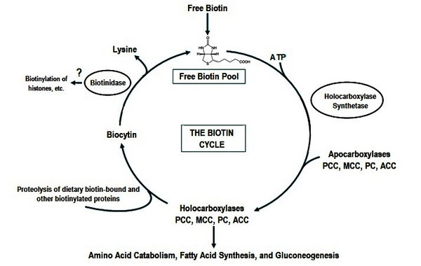- Wolf B. Biotinidase Deficiency. 2000 Mar 24 [updated 2023 May 25]. In: Adam MP, Feldman J, Mirzaa GM, Pagon RA, Wallace SE, Amemiya A, editors. GeneReviews(R) [Internet]. Seattle (WA): University of Washington, Seattle; 1993-2024. Available from http://www.ncbi.nlm.nih.gov/books/NBK1322/ Citation on PubMed