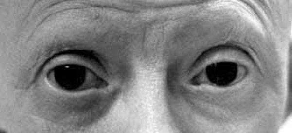 Cardiofaciocutaneous syndrome is also characterized by distinctive facial features. These include a high forehead that narrows at the temples, a short nose, widely spaced eyes (ocular hypertelorism), outside corners of the eyes that point downward (down-slanting palpebral fissures), droopy eyelids (ptosis), a small chin, and low-set ears. Overall, the face is broad and long, and the facial features are sometimes described as "coarse."