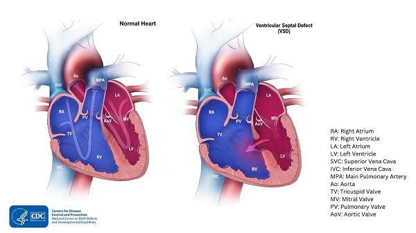 Most affected individuals are born with a heart defect called patent ductus arteriosus (PDA). The ductus arteriosus is a connection between two major arteries, the aorta and the pulmonary artery. This connection is open during fetal development and normally closes shortly after birth. However, the ductus arteriosus remains open, or patent, in babies with PDA. If untreated, this heart defect causes infants to breathe rapidly, feed poorly, and gain weight slowly; in severe cases, it can lead to heart failure. Multiple heart abnormalities have sometimes been found in children with CHOPS syndrome. In addition to PDA, affected individuals may have ventricular septal defect, which is a defect in the muscular wall (septum) that separates the right and left sides of the heart's lower chamber.