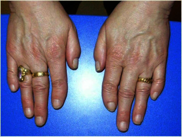 Individuals with Feingold syndrome type 1 or type 2 have characteristic abnormalities of their fingers and toes. Almost all people with this condition have a specific hand abnormality called brachymesophalangy, which refers to shortening of the second and fifth fingers. Other common abnormalities include fifth fingers that curve inward (clinodactyly), underdeveloped thumbs (thumb hypoplasia), and fusion (syndactyly) of the second and third toes or the fourth and fifth toes.