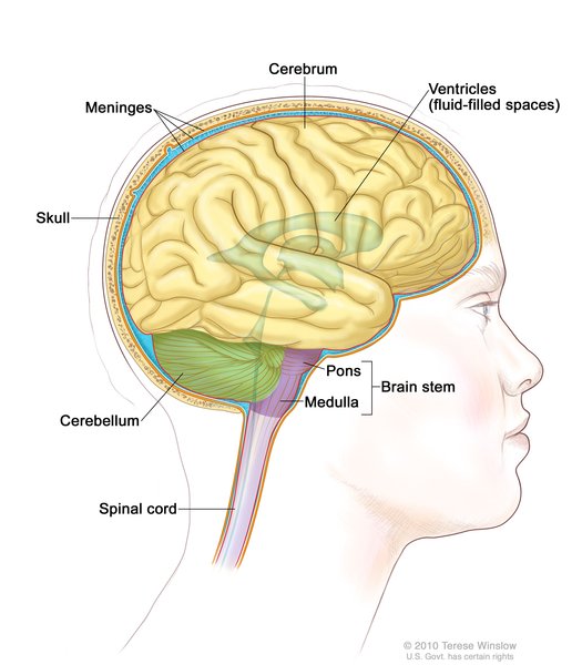 Some people with giant congenital melanocytic nevus develop a condition called neurocutaneous melanosis, which is the presence of pigment-producing skin cells (melanocytes) in the tissue that covers the brain and spinal cord. These melanocytes may be spread out or grouped together in clusters. Their growth can cause increased pressure in the brain, leading to headache, vomiting, irritability, seizures, and movement problems. Tumors in the brain may also develop.