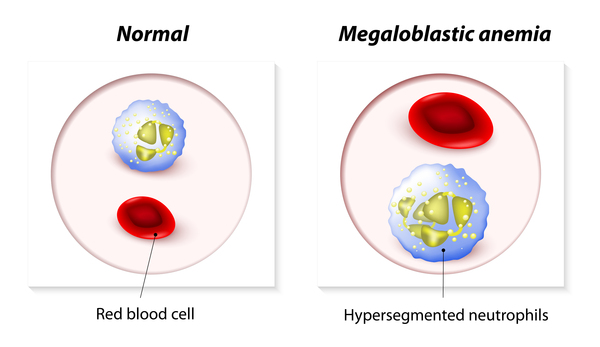 The severe form of glutamate formiminotransferase deficiency is also characterized by megaloblastic anemia. Megaloblastic anemia occurs when a person has a low number of red blood cells (anemia), and the remaining red blood cells are larger than normal (megaloblastic). The symptoms of this blood disorder may include decreased appetite, lack of energy, headaches, pale skin, and tingling or numbness in the hands and feet.