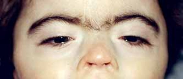 Kleefstra syndrome is a disorder that involves many parts of the body. Characteristic features of Kleefstra syndrome include developmental delay and intellectual disability, severely limited or absent speech, and weak muscle tone (hypotonia). Affected individuals also have an unusually small head size (microcephaly) and a wide, short skull (brachycephaly). Distinctive facial features include eyebrows that grow together in the middle (synophrys), widely spaced eyes (hypertelorism), a sunken appearance of the middle of the face (midface hypoplasia), nostrils that open to the front rather than downward (anteverted nares), a protruding jaw (prognathism), rolled out (everted) lips, and a large tongue (macroglossia). Affected individuals may have a high birth weight and childhood obesity.