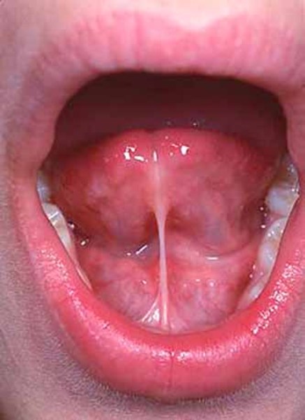 The first symptom of this condition is usually a hoarse voice, which is due to deposits in the vocal cords. In infancy the hoarseness is expressed as a weak cry. The voice abnormalities persist throughout life and can ultimately cause difficulty speaking or complete loss of speech. Involvement of the throat, tonsils, and lips can result in breathing problems and upper respiratory tract infections. Deposits in the tongue can result in a thick and shortened tongue. They can also thicken the band of tissue that connects the tongue to the bottom of the mouth (frenulum), making it difficult to extend the tongue. The tongue may also have a smooth appearance due to damage to the taste buds.
