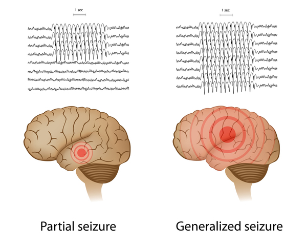 The seizures in MMPSI are described as partial (or focal) because the seizure activity occurs in regions of the brain rather than affecting the entire brain. Seizure activity can appear in multiple locations in the brain or move (migrate) from one region to another during an episode. Depending on the region affected, seizures can involve sudden redness and warmth (flushing) of the face; drooling; short pauses in breathing (apnea); movement of the head or eyes to one side; twitches in the eyelids or tongue; chewing motions; or jerking of an arm, leg, or both on one side of the body. If seizure activity spreads to affect the entire brain, it causes a loss of consciousness, muscle stiffening, and rhythmic jerking (tonic-clonic seizure). Episodes that begin as partial seizures and spread throughout the brain are known as secondarily generalized seizures.