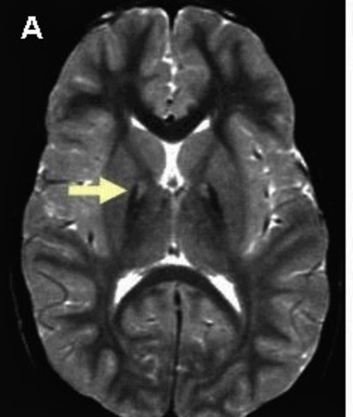 Pantothenate kinase-associated neurodegeneration is characterized by an abnormal buildup of iron in certain areas of the brain. A particular change called the eye-of-the-tiger sign