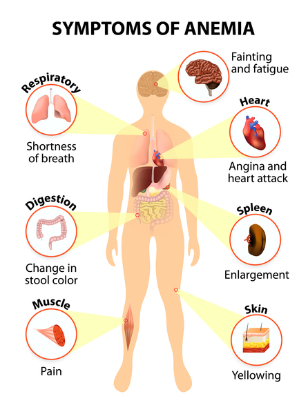 A potential complication of treatment with thiopurine drugs is damage to the bone marrow (hematopoietic toxicity). Although this complication can occur in anyone who takes these drugs, people with TPMT deficiency are at highest risk. Bone marrow normally makes several types of blood cells, including red blood cells, which carry oxygen; white blood cells, which help protect the body from infection; and platelets, which are involved in blood clotting. Damage to the bone marrow results in myelosuppression, a condition in which the bone marrow is unable to make enough of these cells. A shortage of red blood cells (anemia) can cause pale skin (pallor), weakness, shortness of breath, and extreme tiredness (fatigue). Low numbers of white blood cells (neutropenia) can lead to frequent and potentially life-threatening infections. A shortage of platelets (thrombocytopenia) can cause easy bruising and bleeding.