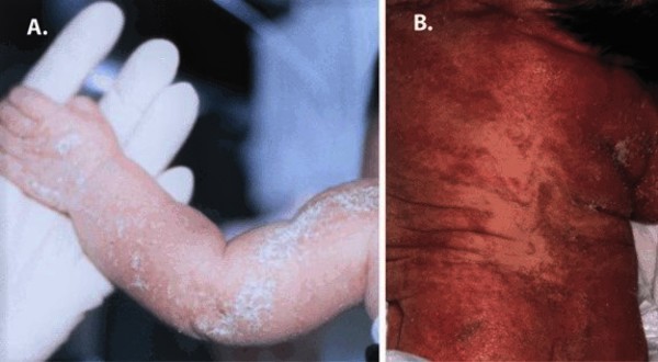 - Hoang MP, Carder KR, Pandya AG, Bennett MJ. Ichthyosis and keratotic follicular plugs containing dystrophic calcification in newborns: distinctive histopathologic features of x-linked dominant chondrodysplasia punctata (Conradi-Hunermann-Happle syndrome). Am J Dermatopathol. 2004 Feb;26(1):53-8. doi: 10.1097/00000372-200402000-00007. Citation on PubMed