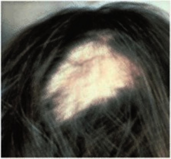 Infants with X-linked chondrodysplasia punctata 2 are born with dry, scaly patches of skin (ichthyosis) in a linear or spiral (whorled) pattern. The scaly patches fade over time, leaving abnormally colored blotches of skin without hair (follicular atrophoderma). Most affected individuals also have sparse, coarse hair on their scalps.