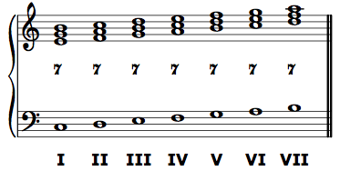In any chord of the fifth (“root position”: 5/3 or 7/5/3 chord), the bass note and the root of the chord are the same. The Roman numeral to be assigned to any chord of the fifth, then, is the scale degree of its bass note. If do is in the bass, the bass is scale-degree 1, and the Roman numeral is I. If re is in the bass, the Roman numeral is II. And so on.