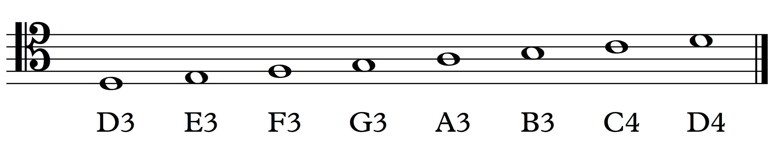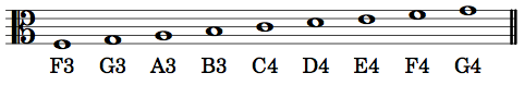 Pitches on the tenor staff are as follows: