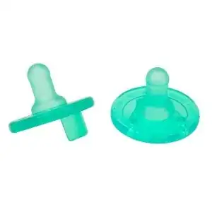 We also use the wub-a-nub that @gaosan80 mentioned. We have a broad spectrum of pacifiers, depending on situation.