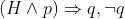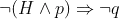 Now, algebraically via Morgans law if we apply a negation to both sides of implication where the left side is a conjunction (we are doing that in order to achieve negation of q) we get: