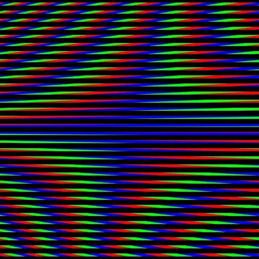 - the top half of the picture has rgb scanlines sloping slightly upward with respect to the pixel rows,