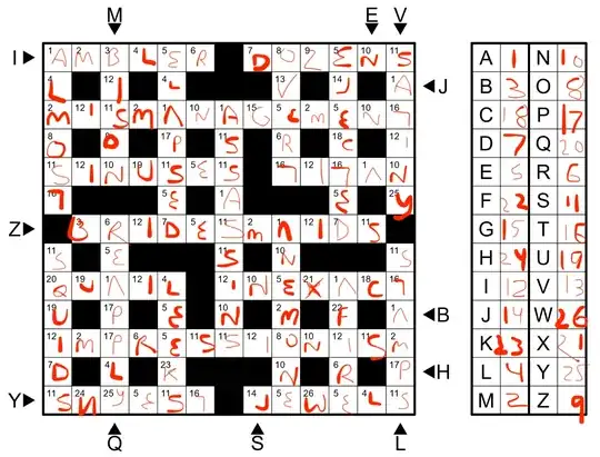 This is a codeword puzzle. Each of the numbers 1–26 stands for a different letter A–Z. Find the correct values for each number so that every entry in the grid makes an existing word found in the UK Advanced Cryptics Dictionary.1 Letters outside the grid are not part of the codeword and are only there to help you find the final answer in the end.