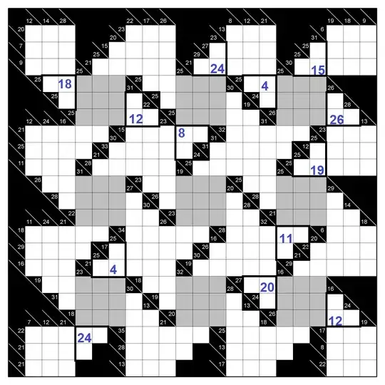 The typo was fixed and we can go on. My pictures still use the old grid including the typo. Filling in all the 3 block areas that have a sum of 4 or 26 gives us