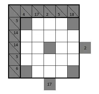 Grey squares mean that nothing goes there for the Kakuro ONLY, and also the Kakuro has the additional property that no two squares are the same horizontally, vertically or diagonally including through the center square.