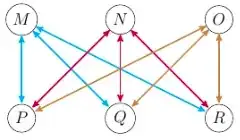 However, there are two left (S & T). They cannot hate anyone in these three groups (degree 3 constraint), so either one hate bond between any two people in EACH group is broken to give S three people to hate and T as well, like so: