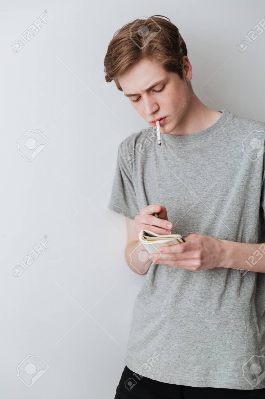 In the middle is where you hold a cigarette, with your fingers "caressing" the cigarette.
