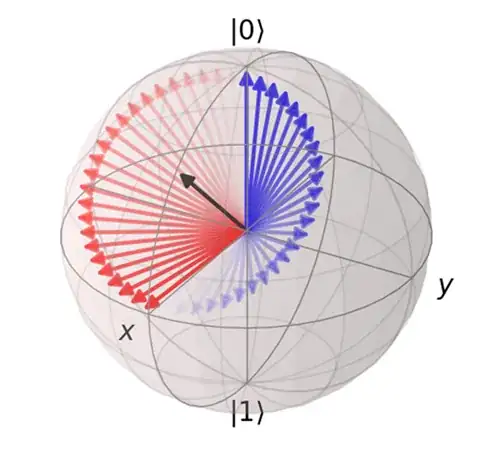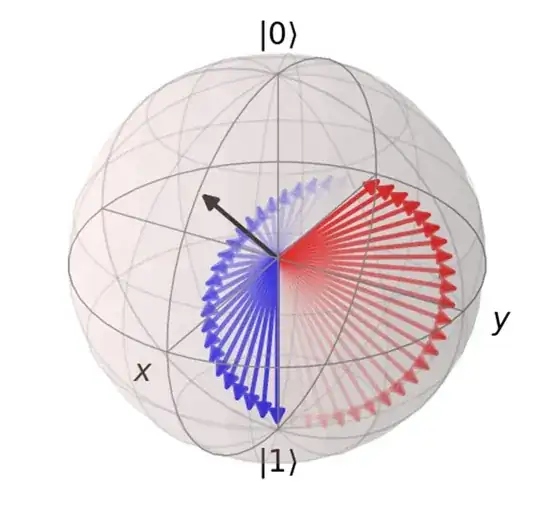 Now, using the RY-Gate, we can construct a matrix using $\frac{\pi}{2}$. This is where my understanding of the mathematical application stops tho, and I can't quite figure out how to do the rest of the calculation. This is as far as I've come, but I can't quite "translate" the result into a comparable qubit state:
