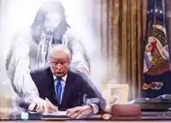 | —Trump, in private after a laying on of hands by evangelical leaders[163] |
