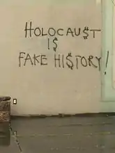 Particularly when it focuses on "how the Jews faked it all", Holocaust denial is a form of anti-Semitism often embraced by bigots who are too cowardly to admit that they wished that Hitler had finished the job.[note 3]