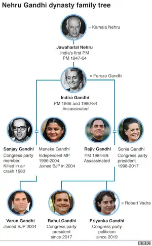 - She was a Muslim: There are several people who claim that she and all her descendents are Muslims, as she converted when she married Feroze Gandhi.[10] However, during a legal dispute between her and her daughter-in-law, Maneka Gandhi, regarding the inheritance of Indira's dead son Sanjay's estate, Maneka had argued that Indira was a Parsi by marriage.[1] She was also denied entry to the Jagannath temple at Puri which allows entry to only orthodox Hindus.[11]