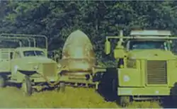A more likely explanation is that the photo was taken of the vehicles and UFO prop while parked in a film location staging area during the 1990 production of the Unsolved Mysteries TV episode.[3]