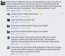 Pickering also appeared and spoke at anti-mosque rallies, and had it in for Bendigo Bank for shutting down the bank account of an anti-mosque group.[10]