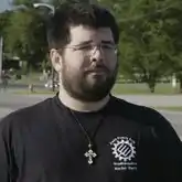 The Traditionalist Worker Party (TWP) was Mr. Heimbach's Neo-Nazi,[note 2] Third Positionist party.[note 3] It was founded with Matthew Parrott and Tony Hovater in 2015.[13][14] TWP's core principles are those of protecting Faith (mainly Christian faith), Family (nuclear family) and Folk (not all folk of course, only white folk). Its slogan is close to the Nazis Kinder, Küche, Kirche mantra. It's a spin-off of the Traditionalist Youth Network. The logo of the Traditionalist Workers Party is a mechanical wheel (representing industry) and a pitchfork (representing agriculture). Hovater was featured in a puff piece by the New York Times in November 2017 that was widely criticized.[15][14]