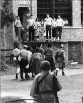 U.S. President Dwight D. Eisenhower was not amused. He gave Faubus an epic presidential bitch-slap and federalized the Arkansas National Guard. He then deployed the 101st Airborne Division of the US Army to the school in order to suppress the inevitable redneck uprising mob violence that ensued and enforce the federal court order.[3] Students would have to finish the remainder of the school year under the supervision of the U.S. military. The school was closed for the 1958-59 school year, ending any hopes of the football team going to the state championship that season.[4] Amazingly, Faubus continued on as governor until 1967, when he chose not to run again, thank God. He ran for the Democratic presidential primary nomination over and over until 1986. He died in 1994.