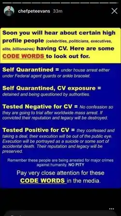 - Buzzfeed (12 May 2020), This Celebrity Chef Lost His Job Then Immediately Posted QAnon Conspiracy Theories On Instagram