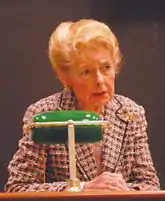 After marriage in 1949 to John Fred Schlafly Jr. (1909—1993),[7] a wealthy corporate lawyer, she became increasingly involved in far-right Republican politics.[8] In addition to starting her own national newsletter, the Phyllis Schlafly Report, she was a delegate to three G.O.P. conventions and served as president of the Illinois Federation of Republican Women. When she ran for the presidency of the National Federation of Republican Women in 1967, she lost in a bitter campaign against a more moderate candidate. Schlafly's next-door neighbor in Alton, a housewife and active Republican, accused her of being "an exponent of an extreme right-wing philosophy—a propagandist who deals in emotion and personalities where it is not necessary to establish facts or prove charges."[9] (Sound familiar?)
