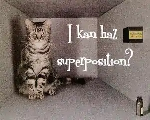 Imagine a cat in a box we can't see into, or as Erwin himself put it, "penned up in a steel chamber with a diabolical device".[2]