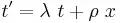 Now suppose a primed observer is flying past, at speed v, in a spacecraft. Solving, we get
