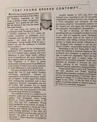 - "Toby Young breeds contempt". Private Eye (Pressdram Ltd) (1461): p. 11. January 2018.