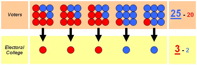 - Knowing how the EC can allow the candidate with the most votes to lose, this metaphor applied to the EC could very well be ‘one wolf and two lambs deciding what to eat for dinner’ with the wolf, not the lambs, having the final say. The minority - in this case, the wolf - would have more of a say than the lambs. Even if you fully accept that there’s a problem with tyranny of the majority, you still have to admit that the electoral college sometimes replaces tyranny by majority with tyranny by minority (and that ‘sometimes’ is getting more likely to happen given because close elections have been more common as of late[20]). As it turns out, the criticisms made of “tyranny of the majority” can usually be more strongly pushed against “tyranny of the minority”.