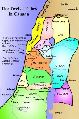 So we searched the Bible and found numerous occasions where, I believe, the Bible in describing the division of the Land of Israel among the sons of Jacob — commencing in Genesis (Chapter 49) when Jacob on his deathbed summons His sons and says "Gather yourselves together, that I might tell you that which shall befall you in the LAST DAYS" (Genesis 49:1) and concluding in Deuteronomy (Chapters 32 and 33) with Moses' song of praise of G-d and his blessings of the twelve tribes as G-d prepares him to view the "Promised Land" which HE had given to HIS chosen "Children of Israel" — makes direct reference to the existence of OIL in Israel.