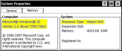 - There are two sections Computer: and System:. Under Computer section is the Windows CE version number and under System section is the Processor Type.